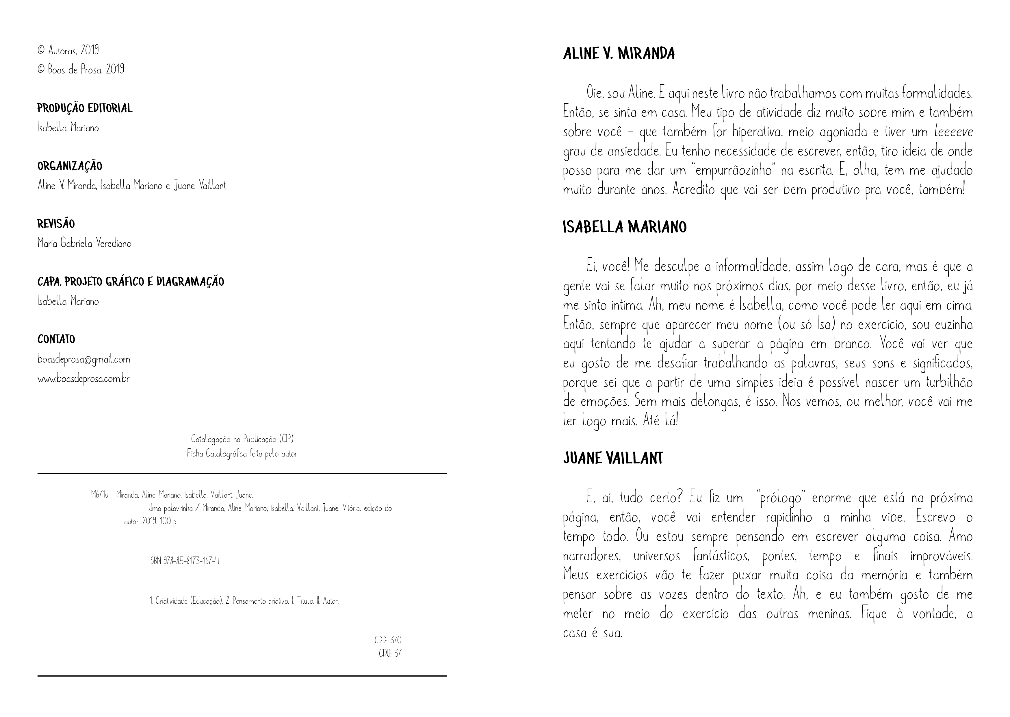 Responsible for the cover, graphic design and also for the production of the book’s content, alongside the writers Aline Miranda and Juane Vaillant.